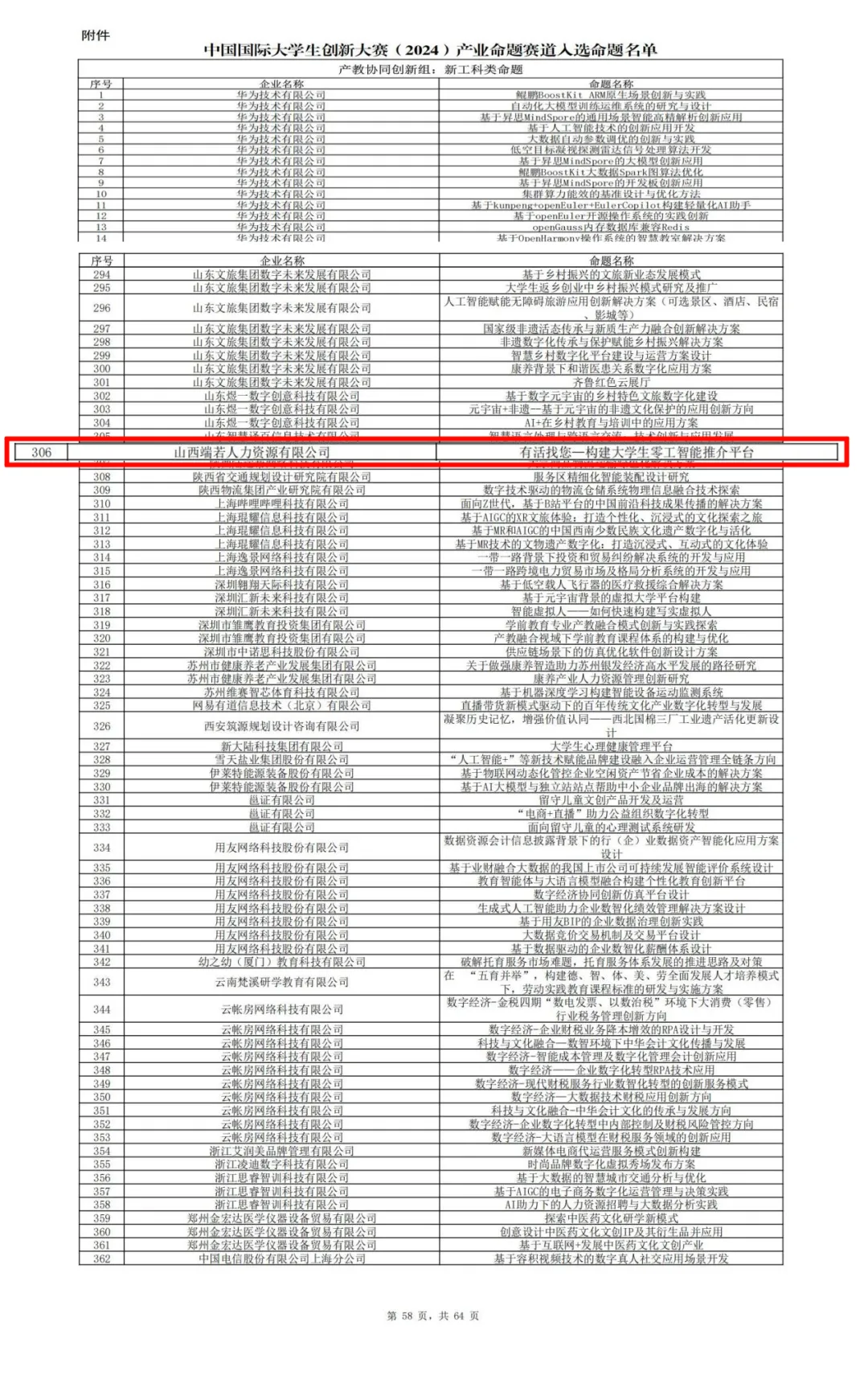 2024年6月,公司与山西财经大学合作,依托产业命题深度参与中国国际大学生创新大赛,最终荣获3项省级铜奖,并在产业命题赛道产教协同创新组(新文科类命题)中斩获优秀奖1项。中国国际大学生创新大赛是由教育部等多家部委共同主办的权威性大学生创新创业赛事,覆盖面广、影响力大,是检验高校创新创业教育与产教融合成效的重要平台。